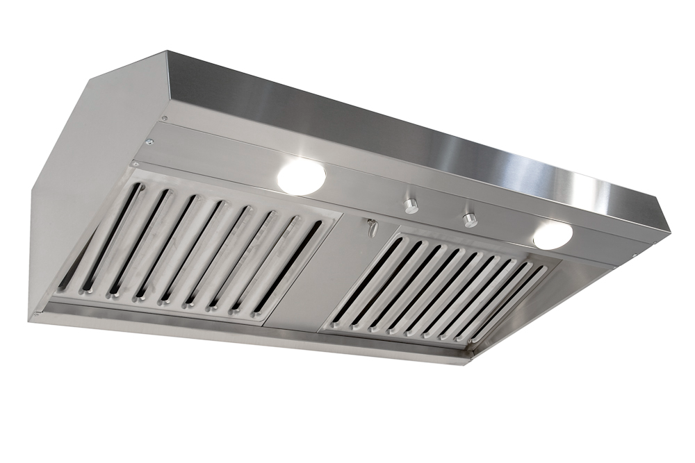 This under cabinet or wall mounted range hood features standard finish in stainless steel or optional black or white powder coat. Includes dishwasher-safe stainless steel baffle filters. Optional duct covers for wall mount, made to your specifications. Range hood dimensions: 10” high x 22” deep x (30”, 36”, 42” and 48”) wide.Read More