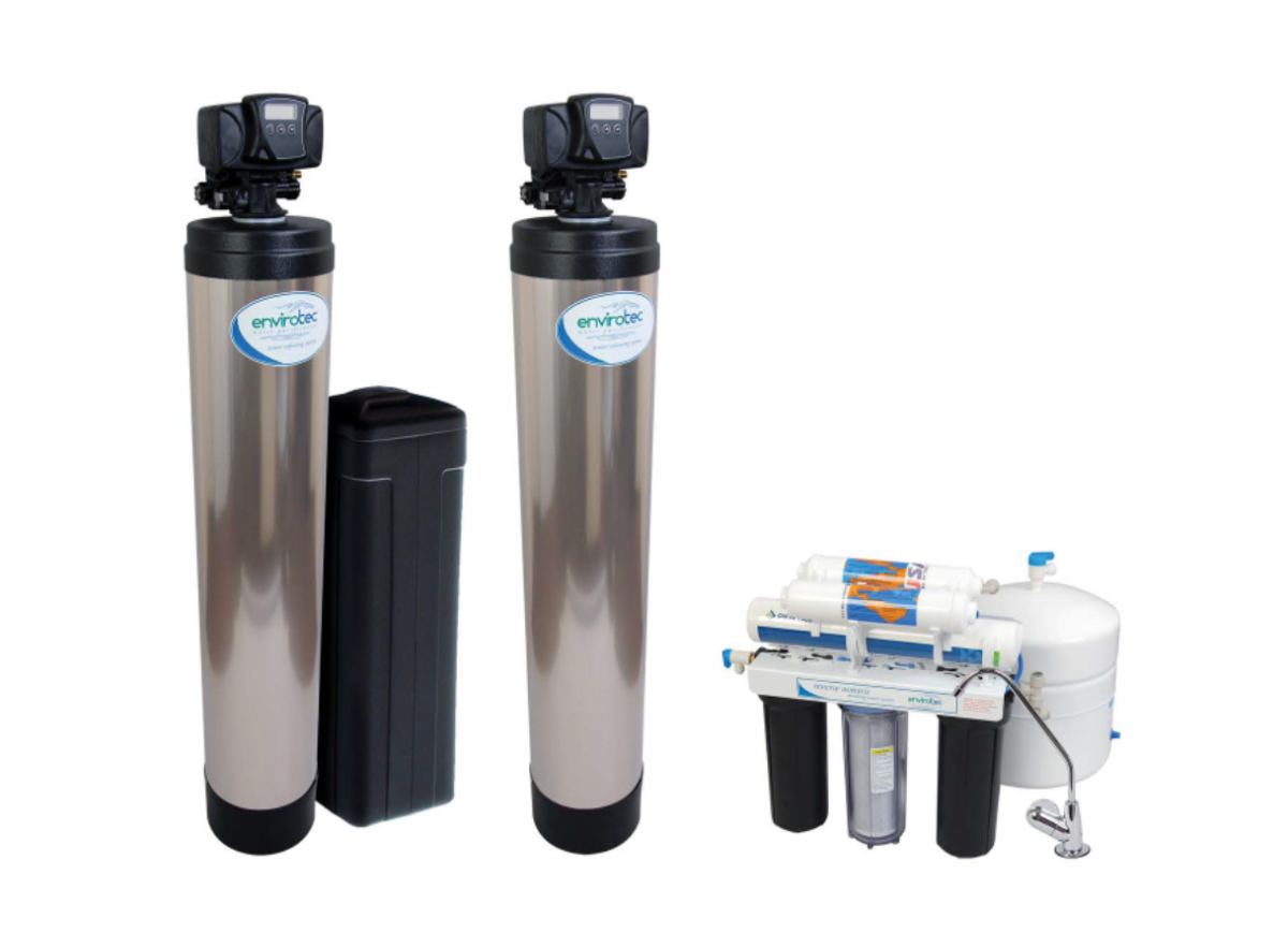 Designed for harsher water conditions with higher production needs. Our system delivers water up to twice as fast as others with a special brass and lead-free design.Six stage Reverse Osmosis system with ultra-efficientmembrane technology and remineralization filter 50GPD system with super-efficient membrane, adds minerals back to the water to raise pH. Tastes great!50,000 grain high-capacity softener removes damaging hardness minerals and extends the life of water-using appliances, softer hair and skin, clothes softer and last longer, use less soap and detergents, and save moneyRead More