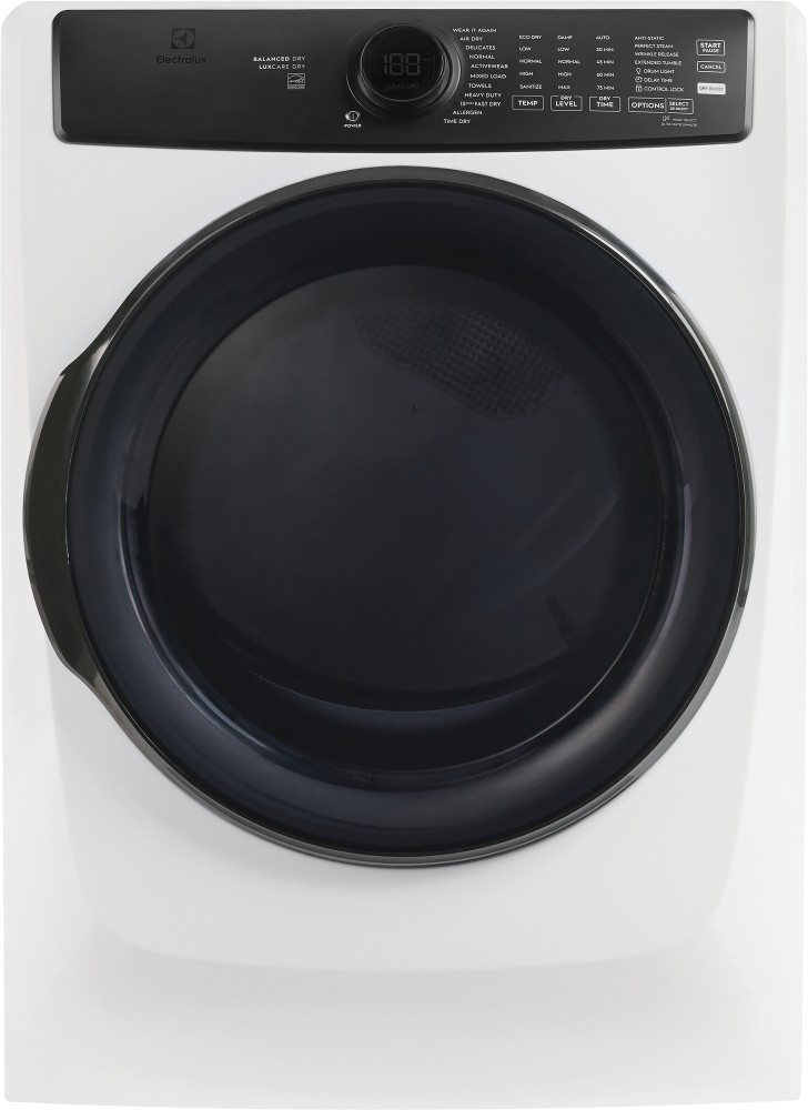 The Electrolux front load gas dryer in matte white finish with LuxCare® Dry uses a moisture sensor to prevent over or under-drying. The Wear It Again cycle refreshes fabrics by using steam and tumble to remove pet hair reduce odors, and reduce wrinkles in just 15 minutes. And the Luxury-Quiet Sound System is so quiet you can run it whenever you want without disrupting your household.Read More