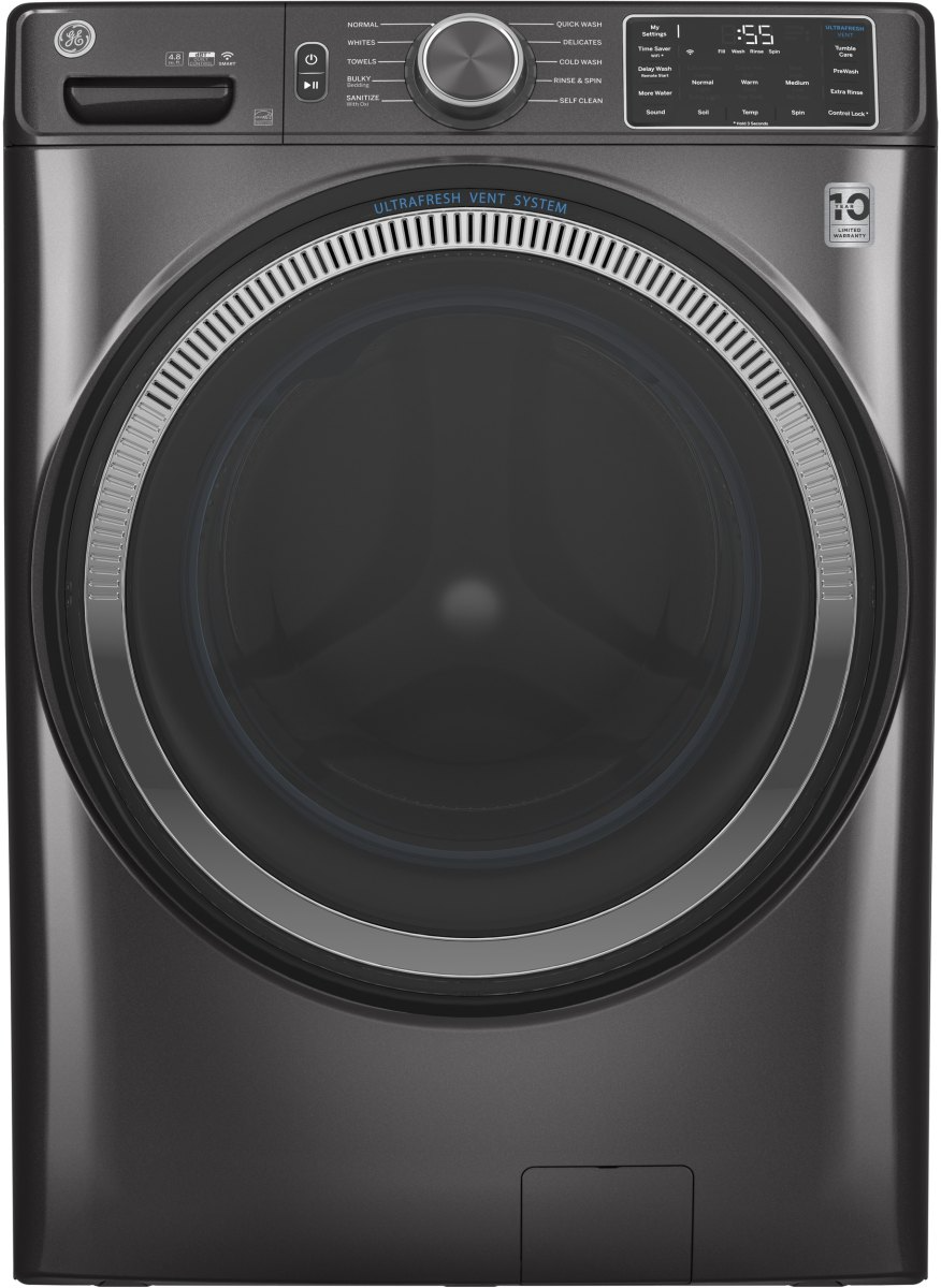 Care for clothes in fewer steps with this GE front-load washer. The UltraFresh vent system with OdorBlock eliminates excess moisture to help prevent odors, ensuring your washer stays fresh and clean, and the Microban antimicrobial technology delivers protection that lives on load after load. This GE front-load washer has built-in Wi-Fi so you can control your laundry from anywhere.Read More