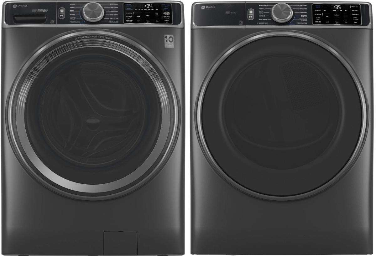 GE Profile™ 5.5 Cu Ft. Carbon Graphite Front Load Washer and GE Profile™ 7.8 Cu Ft. Carbon Graphite Front Load Gas DryerRead More