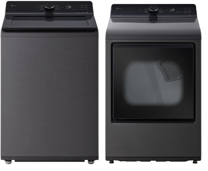 LG 5 Cu. Ft. Platinum Black Impeller Top Load Washer with EasyUnload™ & AI Sensing and LG 7.3 Cu. Ft. Platinum Black Front Load Electric DryerRead More