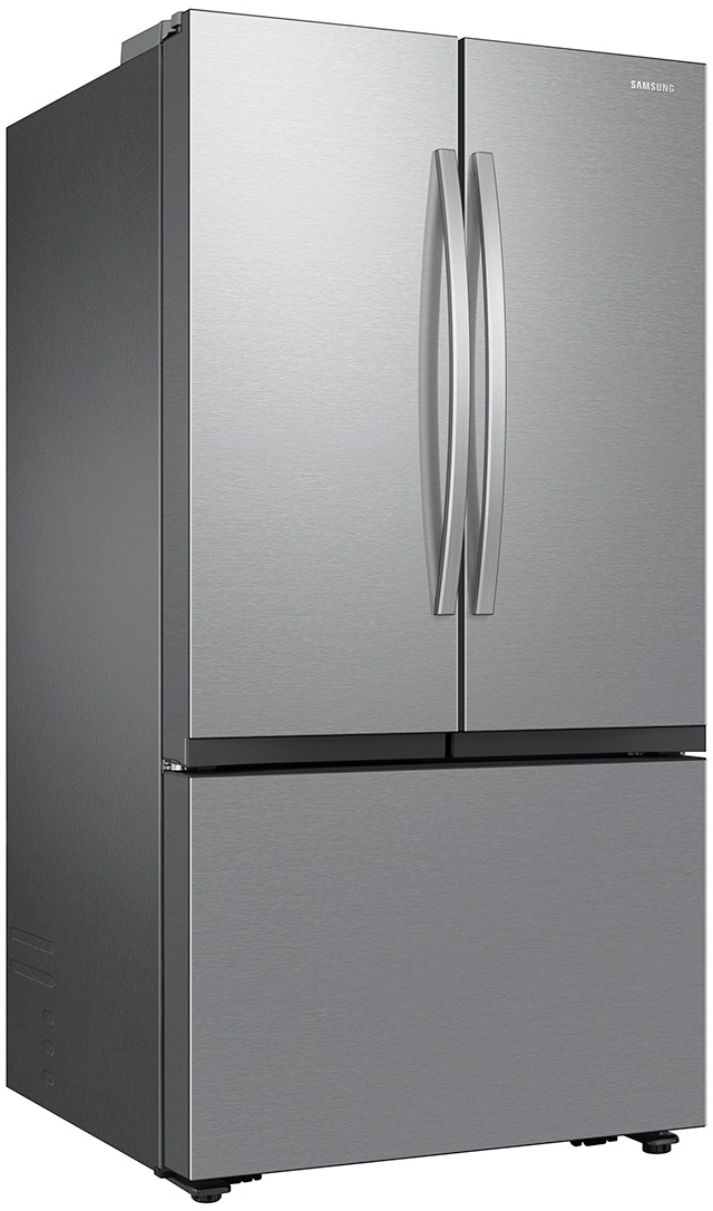 Samsung Mega Capacity 3-Door French Door refrigerator features 32 cu. ft. capacity, Dual Auto Ice Maker and a modern design. Store more groceries, including big and bulky items. The Dual Auto Ice Maker makes two types of ice – cubed, or Ice Bites™ that chill your drink faster.