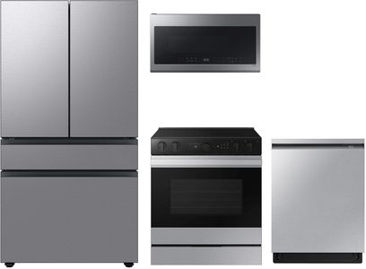 Samsung Bespoke 36" 22.8 Cu. Ft. Stainless Steel French Door Refrigerator, Samsung 24" Fingerprint Resistant Stainless Steel Built In Dishwasher, Samsung 2.1 Cu. Ft. Fingerprint Resistant Stainless Steel Over The Range Microwave, and Samsung Bespoke 30" Stainless Steel Slide-In Electric RangeRead More
